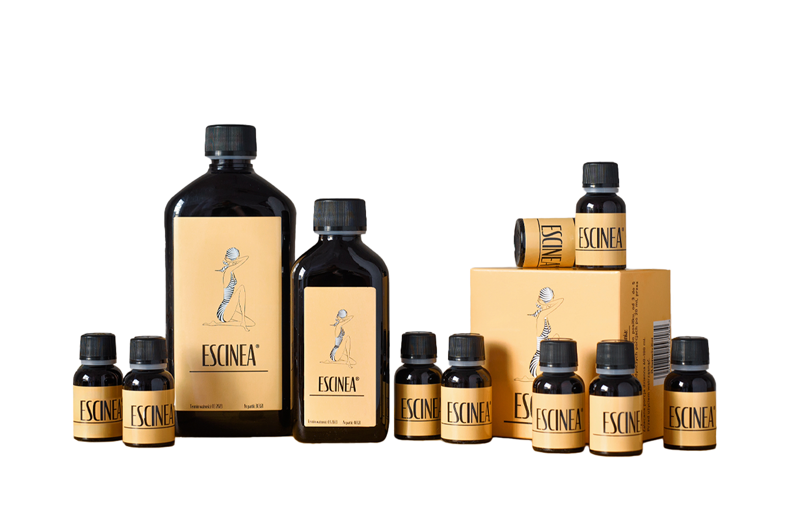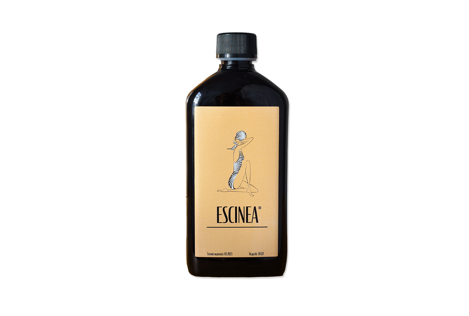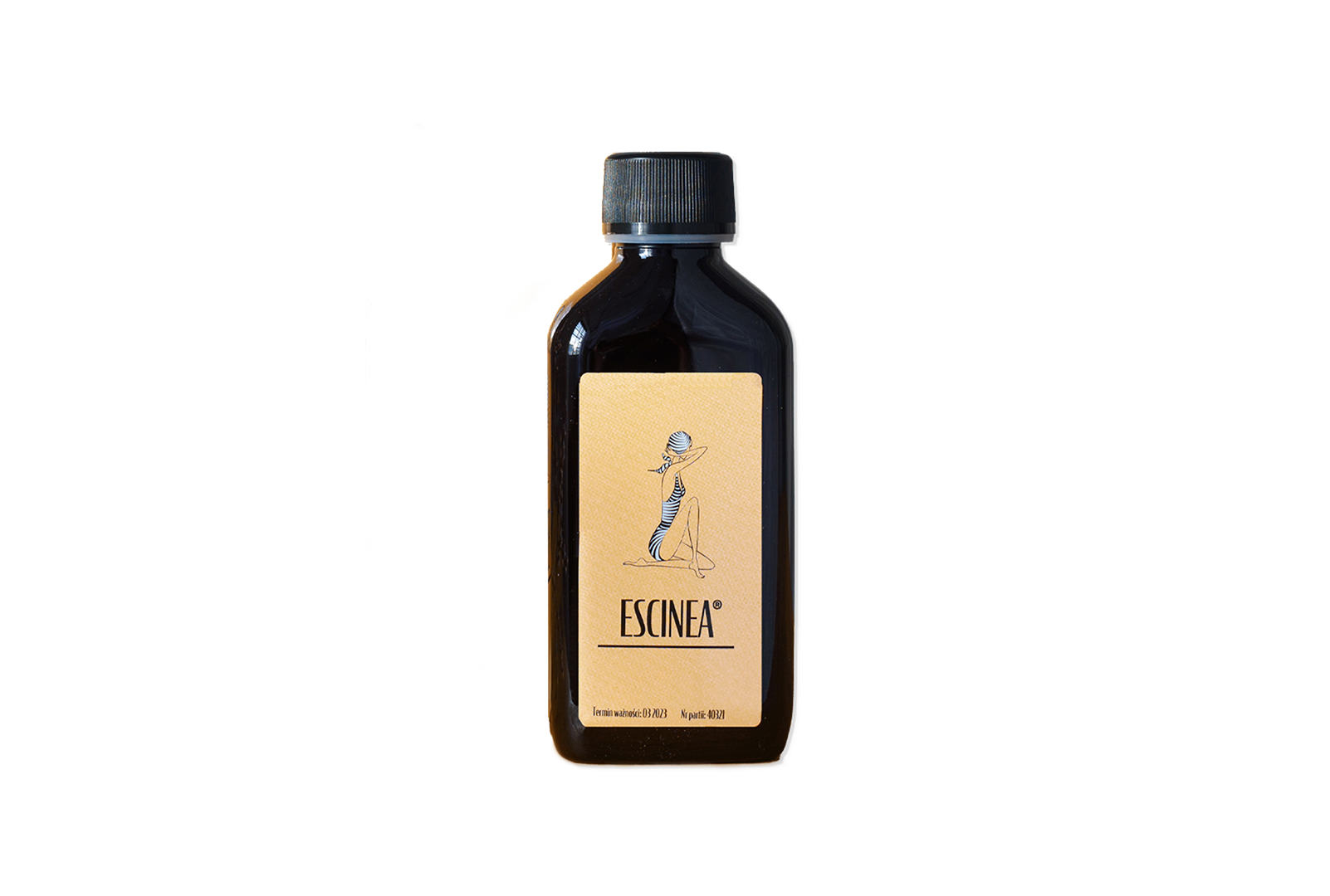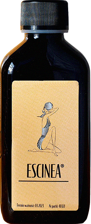 Escinea to suplement diety zawierający roślinne substancje aktywne: ekstrakt z owoców aronii (Aronia melanocarpa) oraz escynę uzyskiwaną z nasion kasztanowca zwyczajnego (Aesculus hippocastanum L.). Escinea zawiera naturalnie występujące cukry, ale nie zawiera żadnych dodanych cukrów ani substancji słodzących.