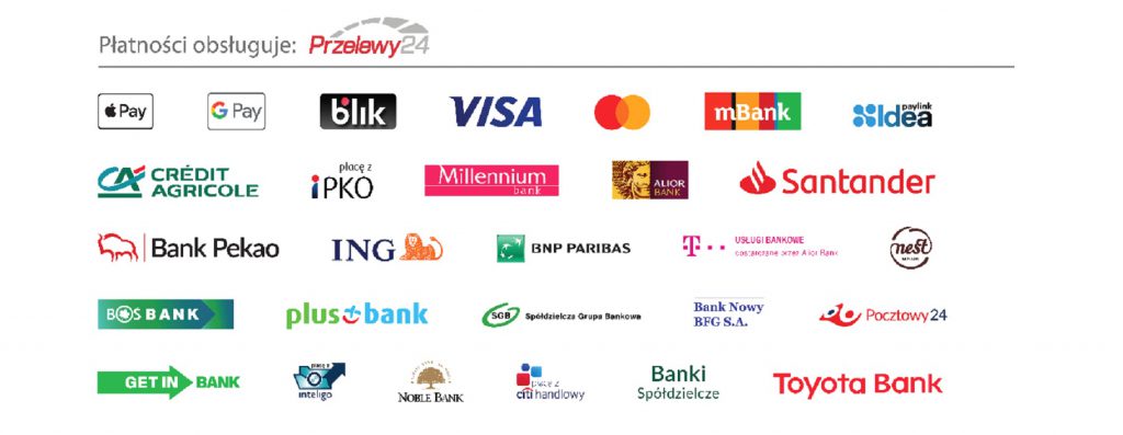 ⦁ płatnością w systemie: ⦁ Przelewy 24;